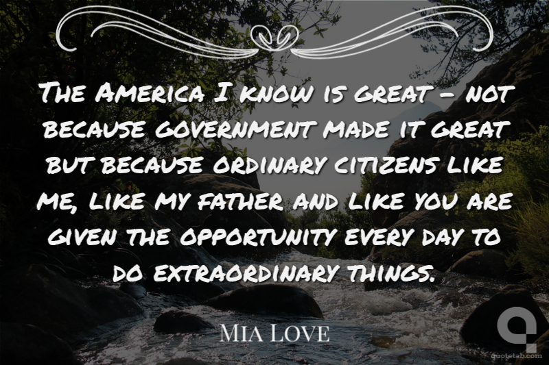 The America I know is great - not because government made it great but because ordinary citizens like me, like my father and like you are given the opportunity every day to do extraordinary things.