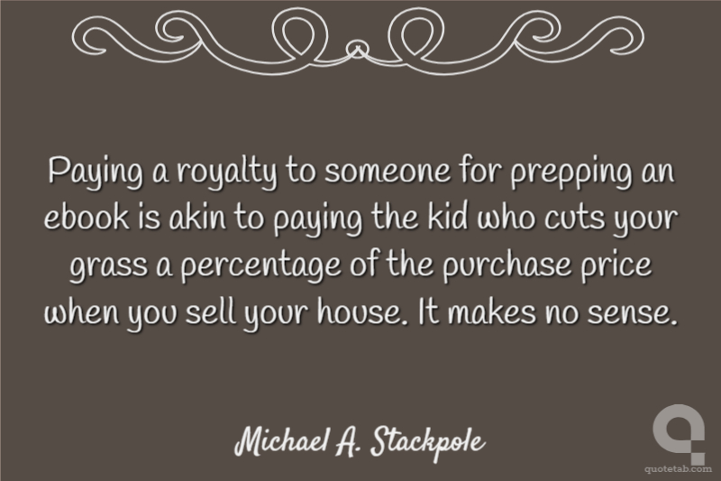 Paying a royalty to someone for prepping an ebook is akin to paying the kid who cuts your grass a percentage of the purchase price when you sell your house. It makes no sense.
