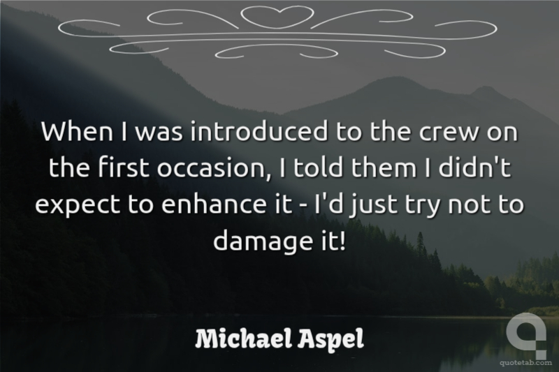 When I was introduced to the crew on the first occasion, I told them I didn't expect to enhance it - I'd just try not to damage it!
