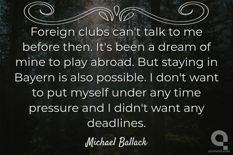 Foreign clubs can't talk to me before then. It's been a dream of mine to play abroad. But staying in Bayern is also possible. I don't want to put myself under any time pressure and I didn't want any deadlines.
