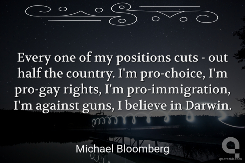 Every one of my positions cuts - out half the country. I'm pro-choice, I'm pro-gay rights, I'm pro-immigration, I'm against guns, I believe in Darwin.
