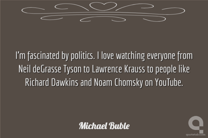 I'm fascinated by politics. I love watching everyone from Neil deGrasse Tyson to Lawrence Krauss to people like Richard Dawkins and Noam Chomsky on YouTube.