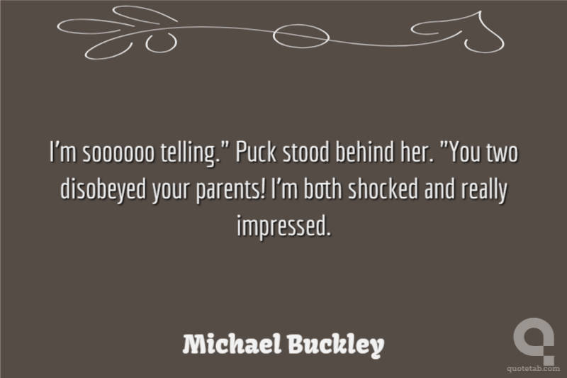 I'm soooooo telling." Puck stood behind her. "You two disobeyed your parents! I'm both shocked and really impressed.