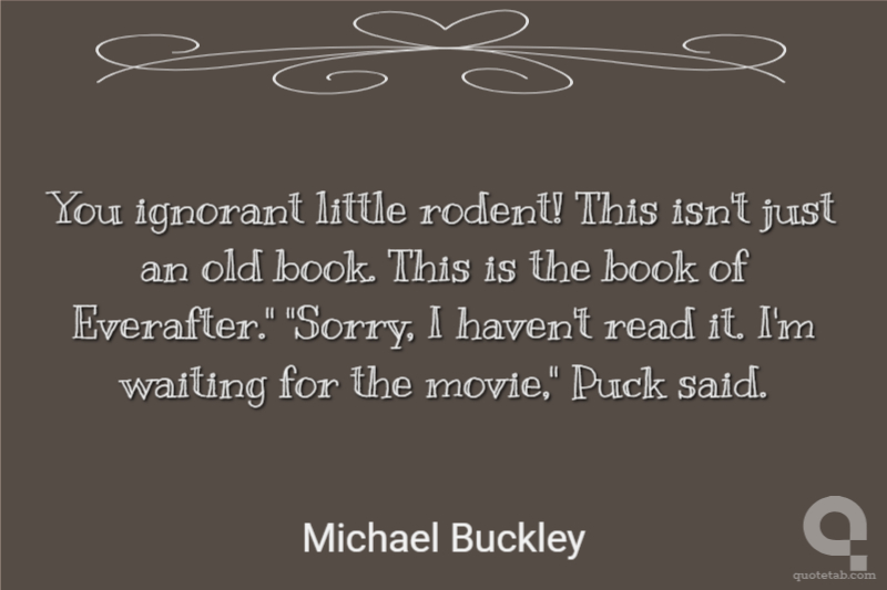You ignorant little rodent! This isn't just an old book. This is the book of Everafter." "Sorry, I haven't read it. I'm waiting for the movie," Puck said.