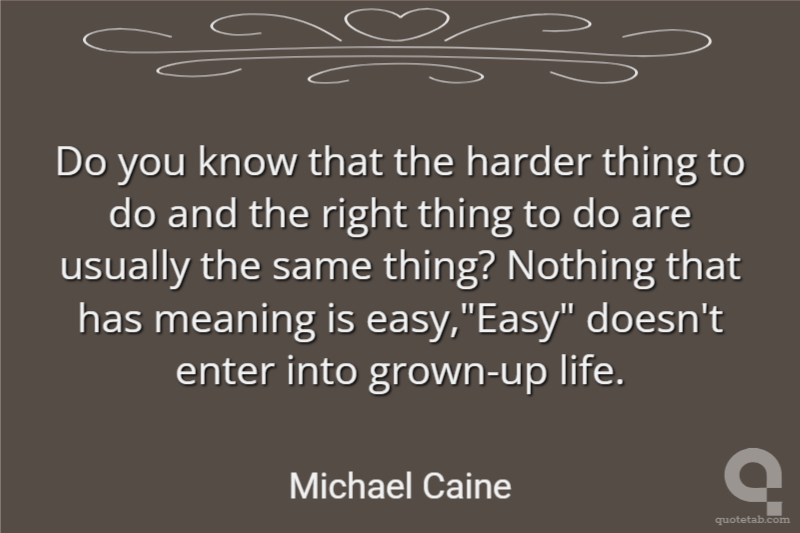 Do you know that the harder thing to do and the right thing to do are usually the same thing? Nothing that has meaning is easy,"Easy" doesn't enter into grown-up life.