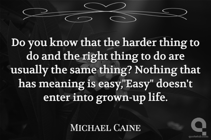Do you know that the harder thing to do and the right thing to do are usually the same thing? Nothing that has meaning is easy,"Easy" doesn't enter into grown-up life.
