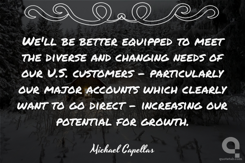 We'll be better equipped to meet the diverse and changing needs of our U.S. customers - particularly our major accounts which clearly want to go direct - increasing our potential for growth.