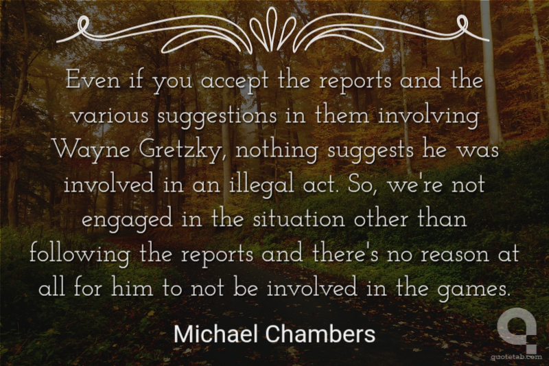 Even if you accept the reports and the various suggestions in them involving Wayne Gretzky, nothing suggests he was involved in an illegal act. So, we're not engaged in the situation other than following the reports and there's no reason at all for him to not be involved in the games.