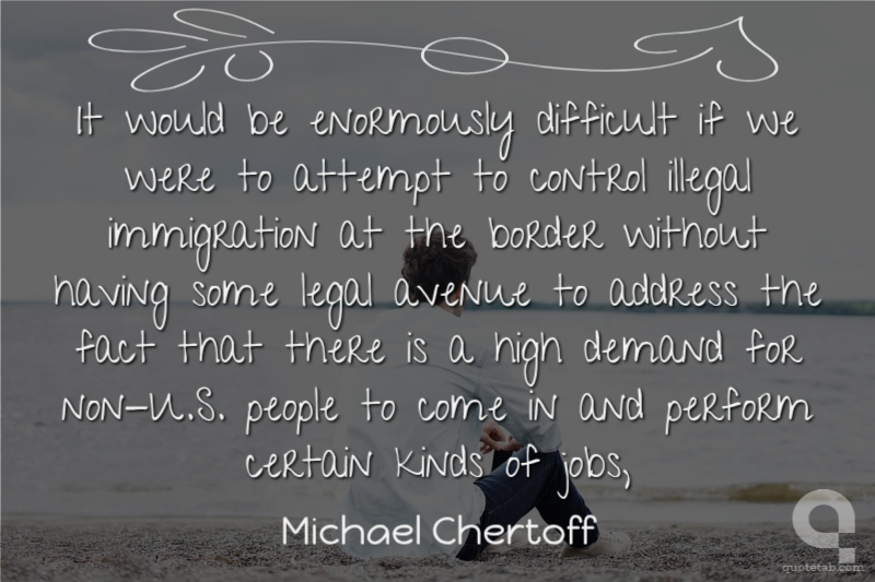 It would be enormously difficult if we were to attempt to control illegal immigration at the border without having some legal avenue to address the fact that there is a high demand for non-U.S. people to come in and perform certain kinds of jobs,