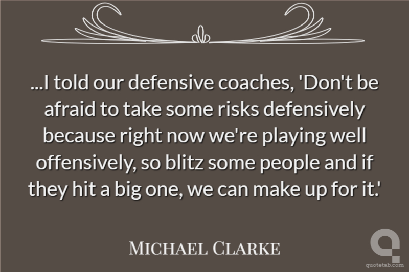 ...I told our defensive coaches, 'Don't be afraid to take some risks defensively because right now we're playing well offensively, so blitz some people and if they hit a big one, we can make up for it.'