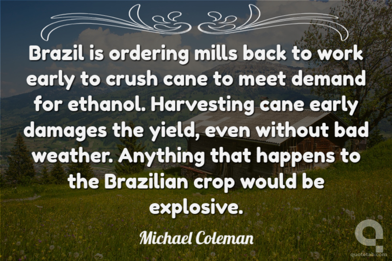 Brazil is ordering mills back to work early to crush cane to meet demand for ethanol. Harvesting cane early damages the yield, even without bad weather. Anything that happens to the Brazilian crop would be explosive.