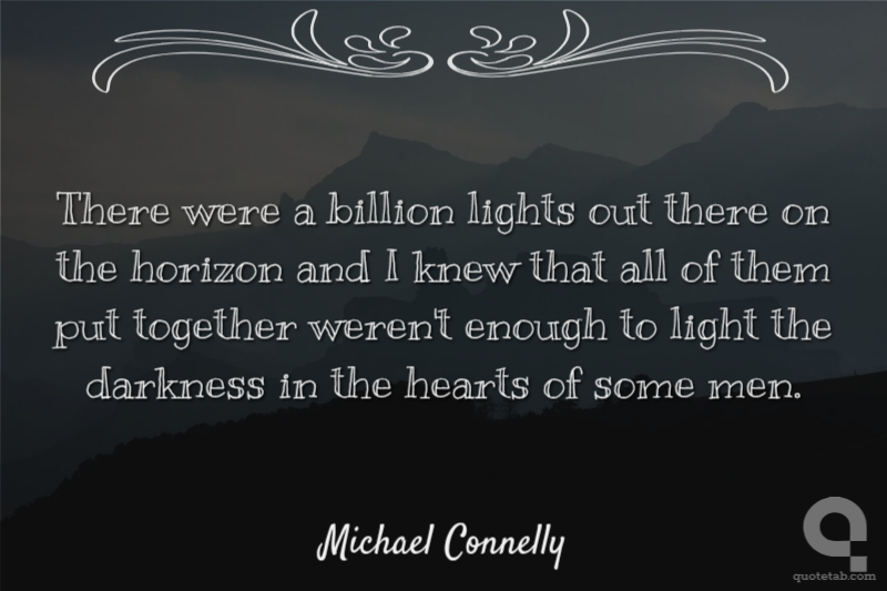 There were a billion lights out there on the horizon and I knew that all of them put together weren't enough to light the darkness in the hearts of some men.