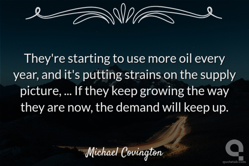 They're starting to use more oil every year, and it's putting strains on the supply picture, ... If they keep growing the way they are now, the demand will keep up.