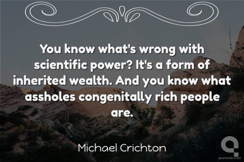 You know what's wrong with scientific power? It's a form of inherited wealth. And you know what assholes congenitally rich people are.