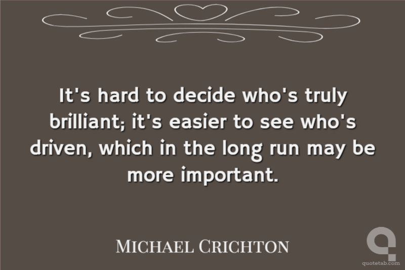 It's hard to decide who's truly brilliant; it's easier to see who's driven, which in the long run may be more important.
