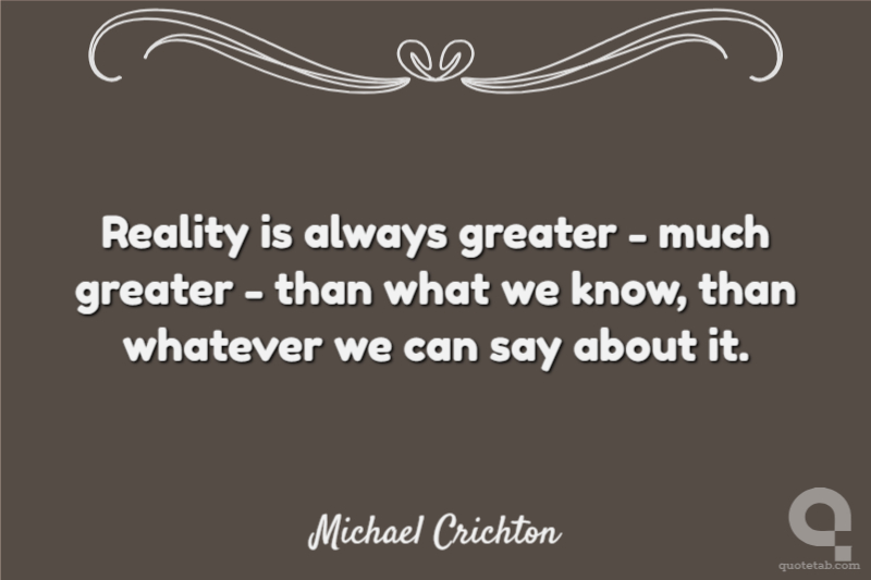 Reality is always greater - much greater - than what we know, than whatever we can say about it.