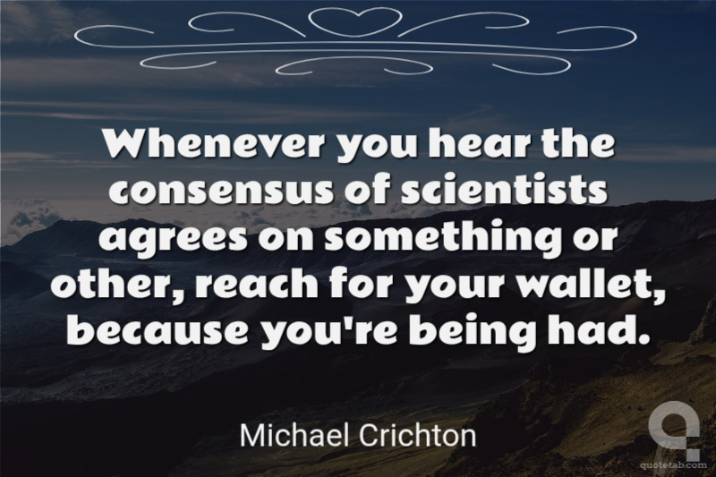 Whenever you hear the consensus of scientists agrees on something or other, reach for your wallet, because you're being had.