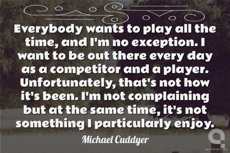 Everybody wants to play all the time, and I'm no exception. I want to be out there every day as a competitor and a player. Unfortunately, that's not how it's been. I'm not complaining but at the same time, it's not something I particularly enjoy.