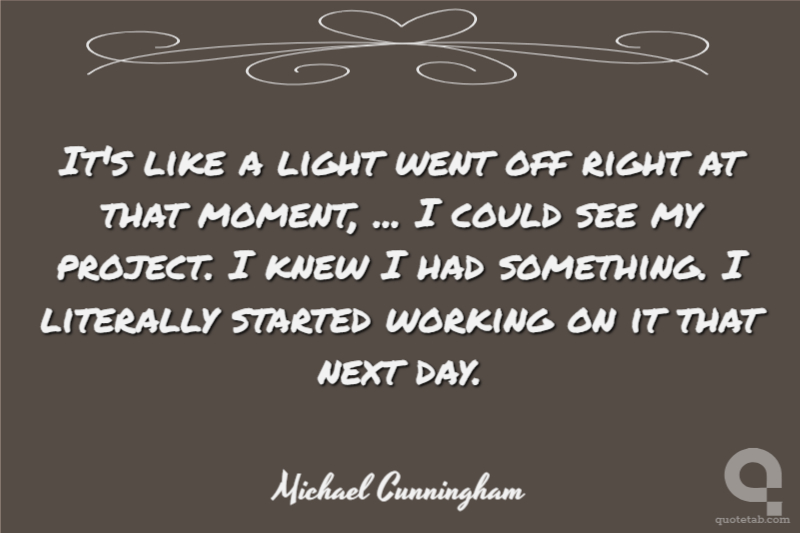 It's like a light went off right at that moment, ... I could see my project. I knew I had something. I literally started working on it that next day.