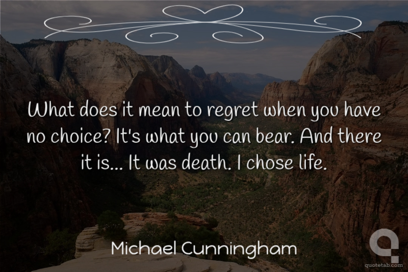 What does it mean to regret when you have no choice? It's what you can bear. And there it is... It was death. I chose life.