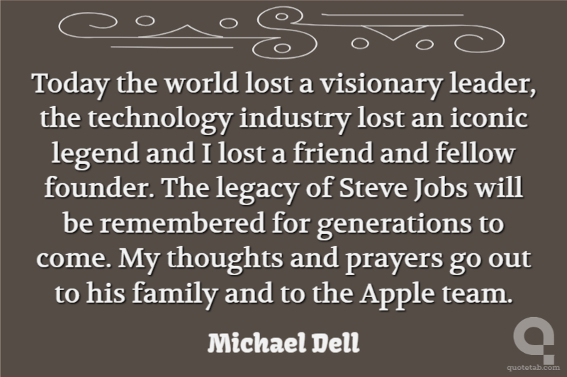 Today the world lost a visionary leader, the technology industry lost an iconic legend and I lost a friend and fellow founder. The legacy of Steve Jobs will be remembered for generations to come. My thoughts and prayers go out to his family and to the Apple team.