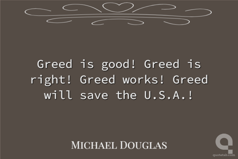 Greed is good! Greed is right! Greed works! Greed will save the U.S.A.!