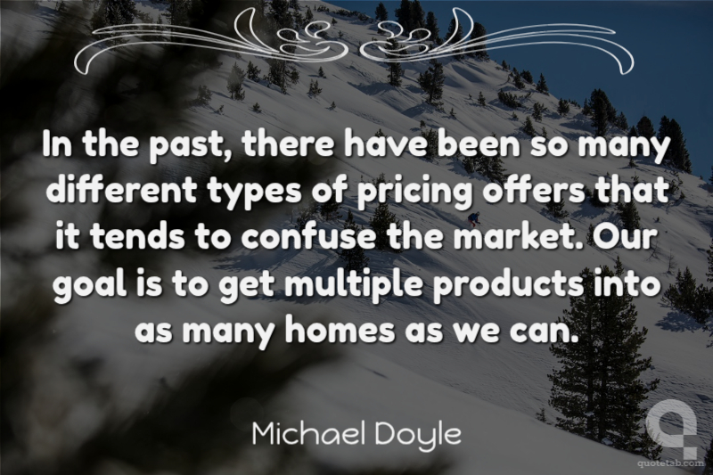In the past, there have been so many different types of pricing offers that it tends to confuse the market. Our goal is to get multiple products into as many homes as we can.