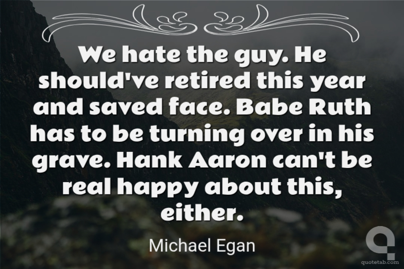 We hate the guy. He should've retired this year and saved face. Babe Ruth has to be turning over in his grave. Hank Aaron can't be real happy about this, either.