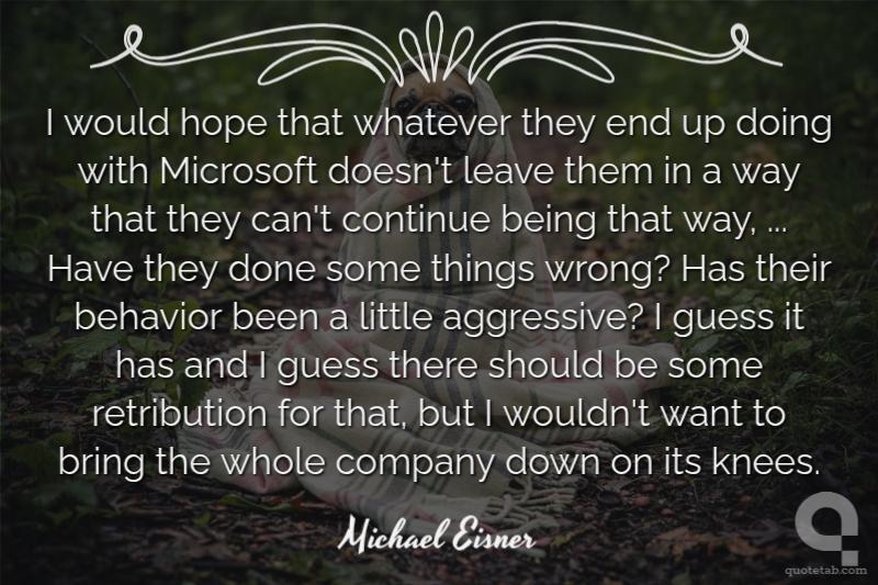 I would hope that whatever they end up doing with Microsoft doesn't leave them in a way that they can't continue being that way, ... Have they done some things wrong? Has their behavior been a little aggressive? I guess it has and I guess there should be some retribution for that, but I wouldn't want to bring the whole company down on its knees.