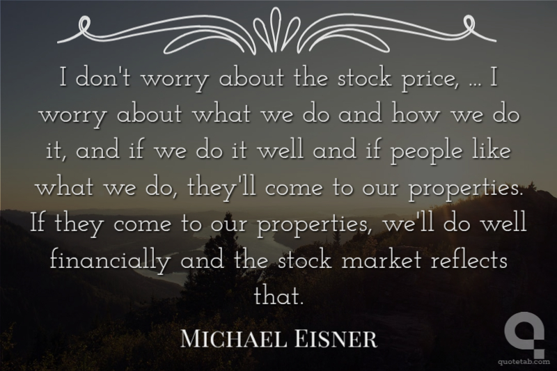 I don't worry about the stock price, ... I worry about what we do and how we do it, and if we do it well and if people like what we do, they'll come to our properties. If they come to our properties, we'll do well financially and the stock market reflects that.