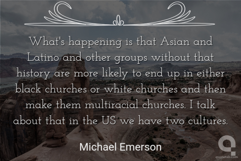 What's happening is that Asian and Latino and other groups without that history are more likely to end up in either black churches or white churches and then make them multiracial churches. I talk about that in the US we have two cultures.