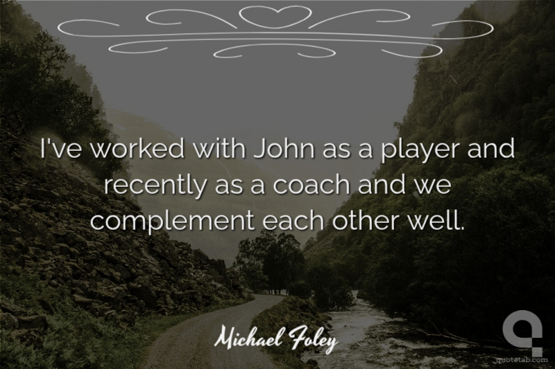 I've worked with John as a player and recently as a coach and we complement each other well.