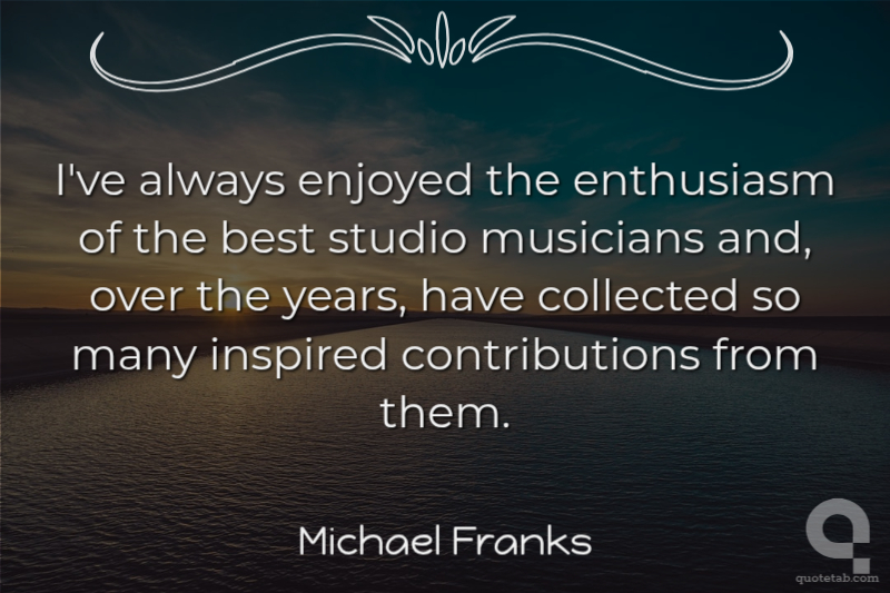 Ive always enjoyed the enthusiasm of the best studio musicians and, over the years, have collected so many inspired contributions from them.