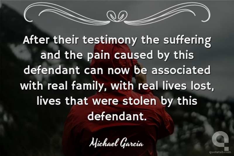 After their testimony the suffering and the pain caused by this defendant can now be associated with real family, with real lives lost, lives that were stolen by this defendant.