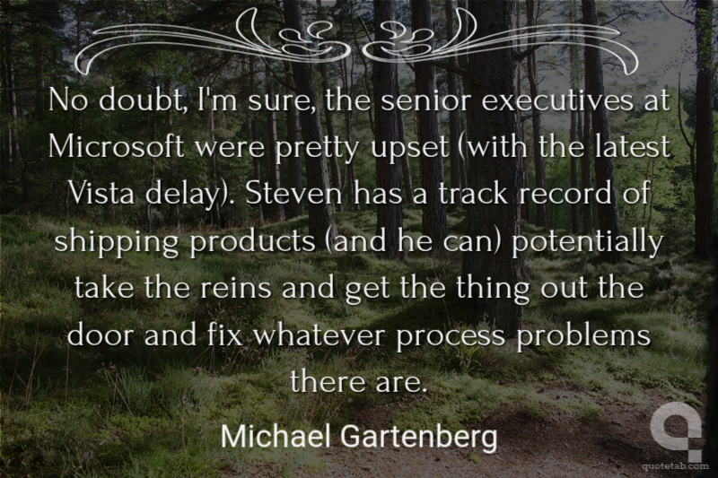 No doubt, I'm sure, the senior executives at Microsoft were pretty upset (with the latest Vista delay). Steven has a track record of shipping products (and he can) potentially take the reins and get the thing out the door and fix whatever process problems there are.
