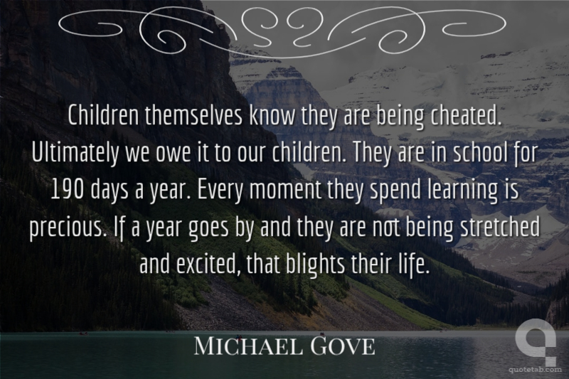 Children themselves know they are being cheated. Ultimately we owe it to our children. They are in school for 190 days a year. Every moment they spend learning is precious. If a year goes by and they are not being stretched and excited, that blights their life.