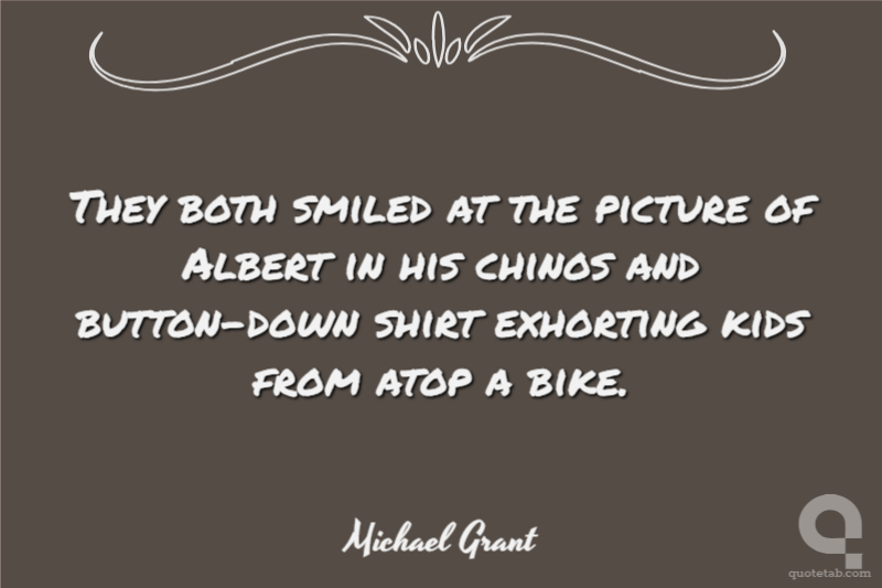 They both smiled at the picture of Albert in his chinos and button-down shirt exhorting kids from atop a bike.