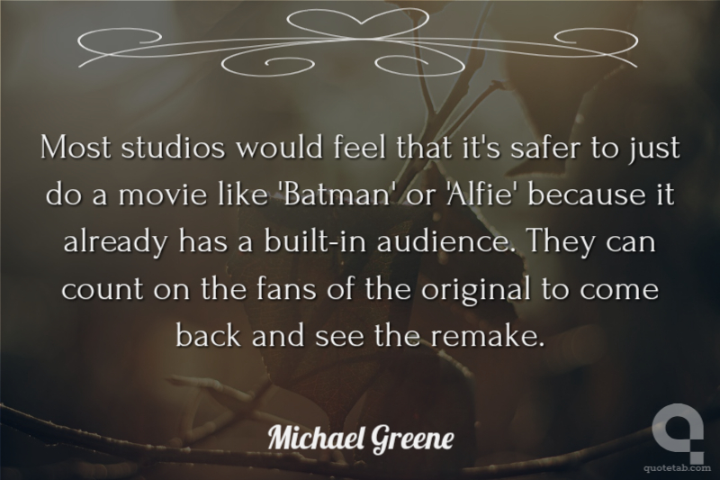 Most studios would feel that it's safer to just do a movie like 'Batman' or 'Alfie' because it already has a built-in audience. They can count on the fans of the original to come back and see the remake.