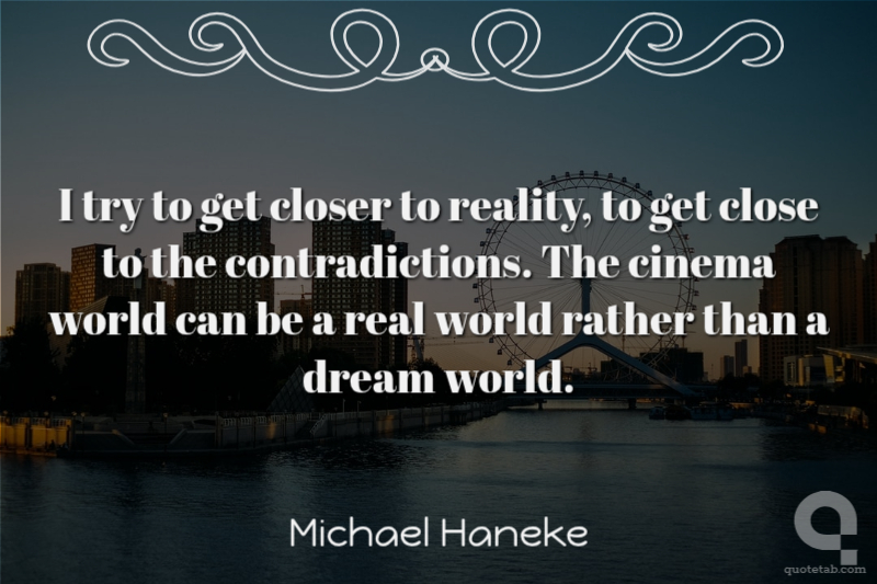 I try to get closer to reality, to get close to the contradictions. The cinema world can be a real world rather than a dream world.
