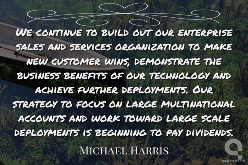 We continue to build out our enterprise sales and services organization to make new customer wins, demonstrate the business benefits of our technology and achieve further deployments. Our strategy to focus on large multinational accounts and work toward large scale deployments is beginning to pay dividends.