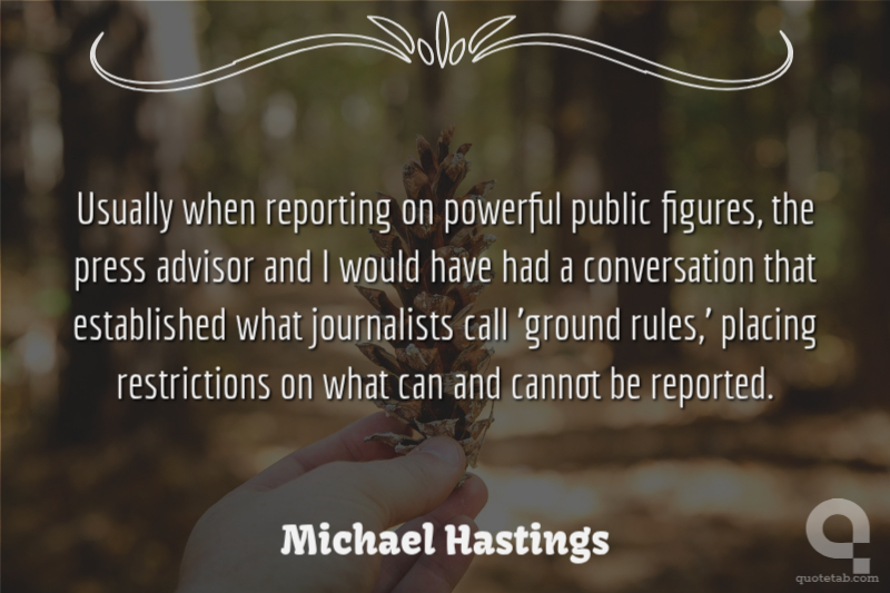 Usually when reporting on powerful public figures, the press advisor and I would have had a conversation that established what journalists call 'ground rules,' placing restrictions on what can and cannot be reported.