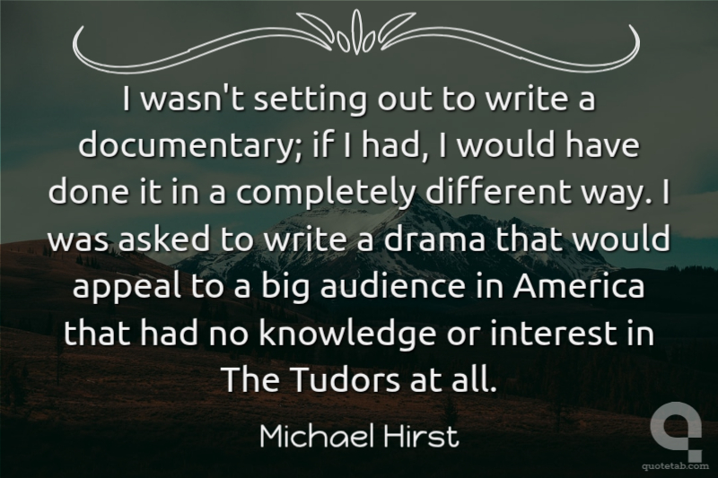 I wasn't setting out to write a documentary; if I had, I would have done it in a completely different way. I was asked to write a drama that would appeal to a big audience in America that had no knowledge or interest in The Tudors at all.