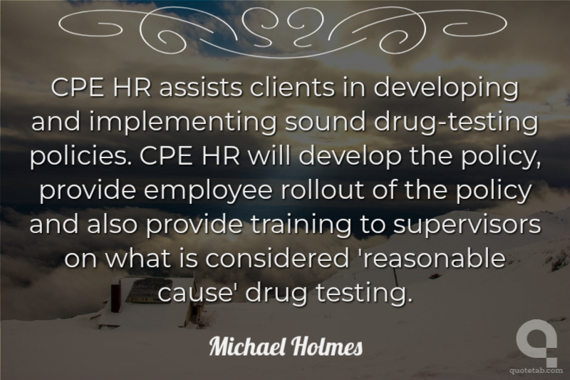 CPE HR assists clients in developing and implementing sound drug-testing policies. CPE HR will develop the policy, provide employee rollout of the policy and also provide training to supervisors on what is considered 'reasonable cause' drug testing.