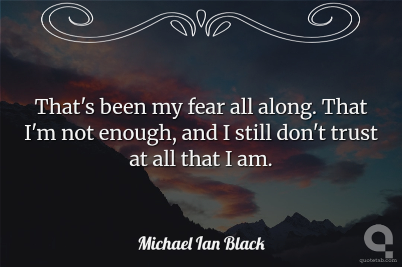 That's been my fear all along. That I'm not enough, and I still don't trust at all that I am.