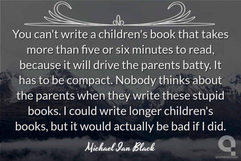 You can't write a children's book that takes more than five or six minutes to read, because it will drive the parents batty. It has to be compact. Nobody thinks about the parents when they write these stupid books. I could write longer children's books, but it would actually be bad if I did.