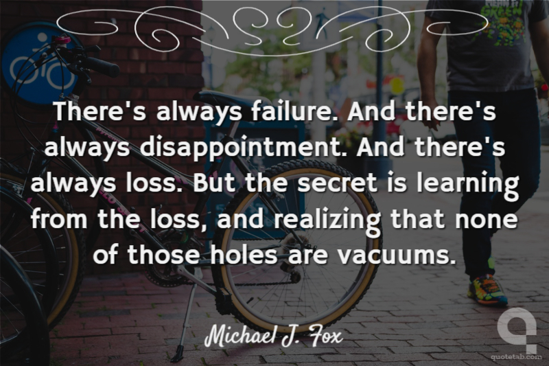 There's always failure. And there's always disappointment. And there's always loss. But the secret is learning from the loss, and realizing that none of those holes are vacuums.