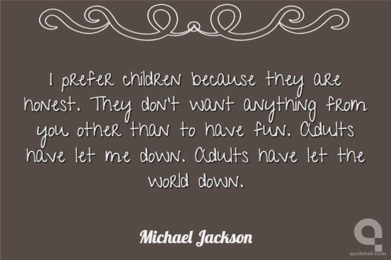 I prefer children because they are honest. They don't want anything from you other than to have fun. Adults have let me down. Adults have let the world down.