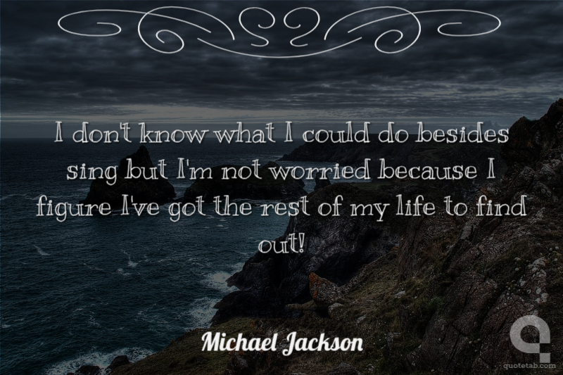 I don't know what I could do besides sing but I'm not worried because I figure I've got the rest of my life to find out!