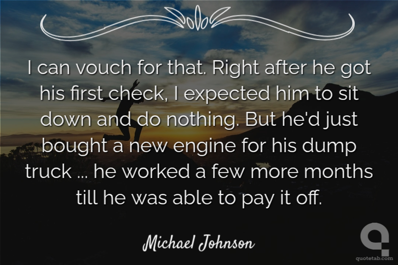 I can vouch for that. Right after he got his first check, I expected him to sit down and do nothing. But he'd just bought a new engine for his dump truck ... he worked a few more months till he was able to pay it off.