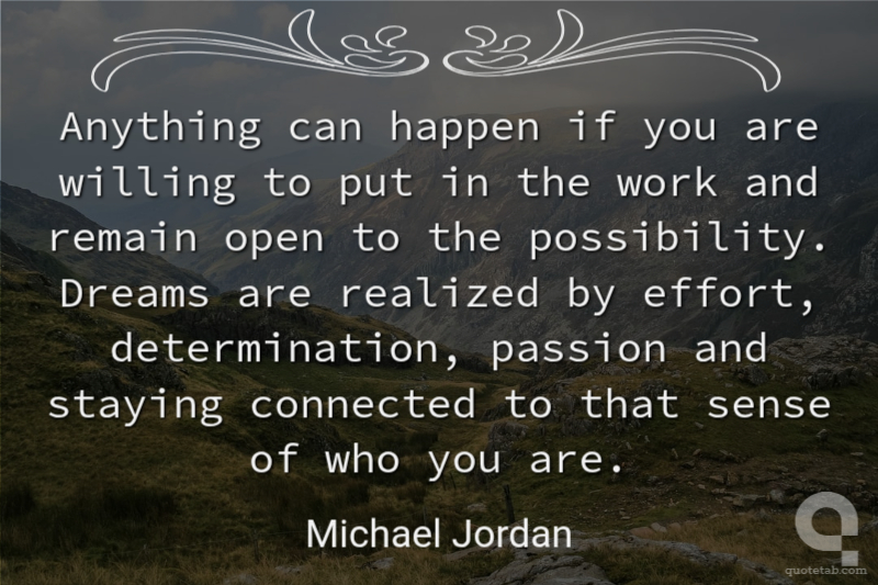 Anything can happen if you are willing to put in the work and remain open to the possibility. Dreams are realized by effort, determination, passion and staying connected to that sense of who you are.